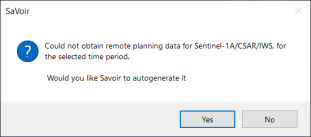 If the web service provides no answer, or empty timelines, SaVoir will report it to the user and propose to create a "full swath" timeline as for the other missions