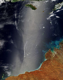 Sun glint is the mirror-like reflection of the Sun off a water surface in a satellite image.