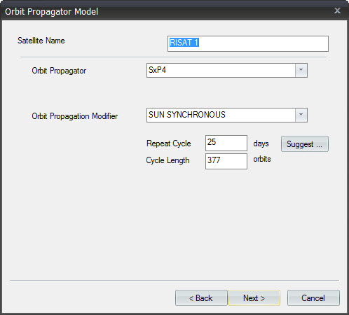 New Sun Synchronous Orbit wizard page. It includes a new function to suggest the Repeat Cycle and Cycle Length that best fits the current orbit.
