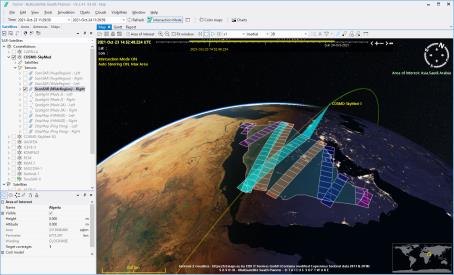 - One or more Satellites, Orbits and Sensors, selected from user-defined scenarios.