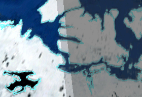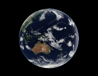 Shows the latest image of global clouds. Images are automatically downloaded periodically (roughly updated every three hours). The clouds are shown as realistically as possible and it is even possible to fly "under" the clouds. Toggle on and off viewing of the clouds by selecting and de-selecting Clouds in the Main Menu. and select from Forecast orLive.