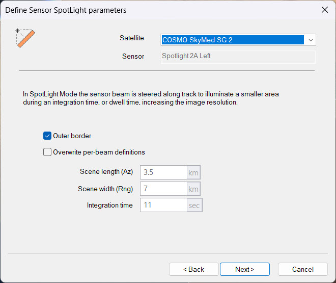 Outer border: Display an external swath boundary for special acquisitions, showing equivalent nadir times. More information here.