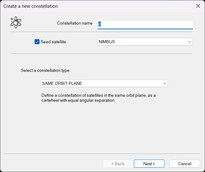 Select a Seed satellite if necessary from the satellites in the current scenario