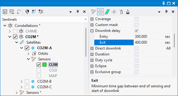 The constraint will act on the visibility opportunities by trimming their duration to comply with the downlink delay. Therefore you need to create a sensing plan first and an antenna visibilities after.