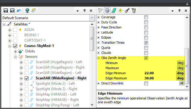 When the OZA constraint is active any swath with OZA outside of the defined minimum and maximum values will be discarded.
