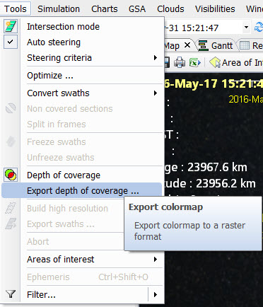 New "export color map" function to allow exporting e.g. Depth of Coverage maps to GeoTIFF, JPG, PNG, KML, KMZ.