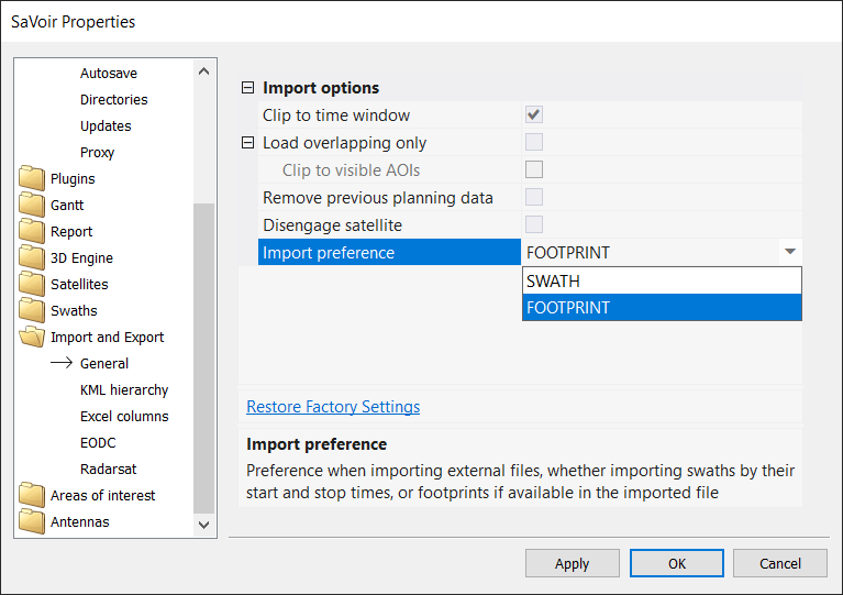(2) If an input footprint is available in the file, SaVoir will use it to refine the swath times and regenerate the footprint. Regeneration will be according to the current orbit and the sensor field of view. It will do it by calculating a sensor intersection with the input footprint for the swath candidate times. This will result in a refined footprint (slightly different than the input footprint), and swath timings, that will used for all further work in SaVoir .