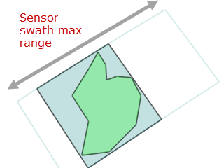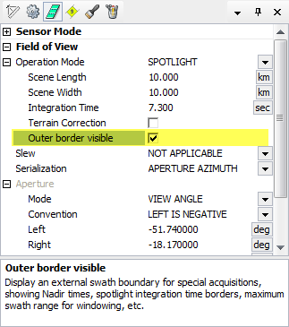 For special modes, e.. Spotlight, Windowing. It is possible to display an outer border of the theoretical pushbroom swath, indicating the Nadir times and the envelope maximum swath range for the particular mode selected.